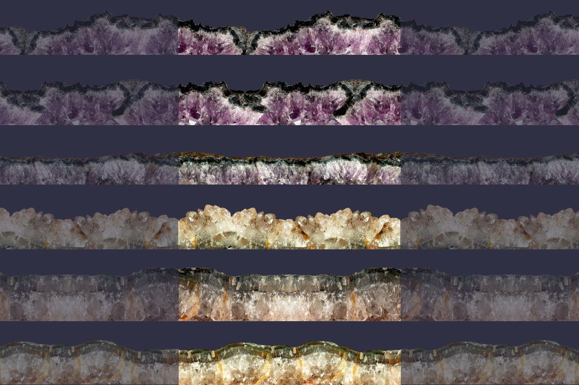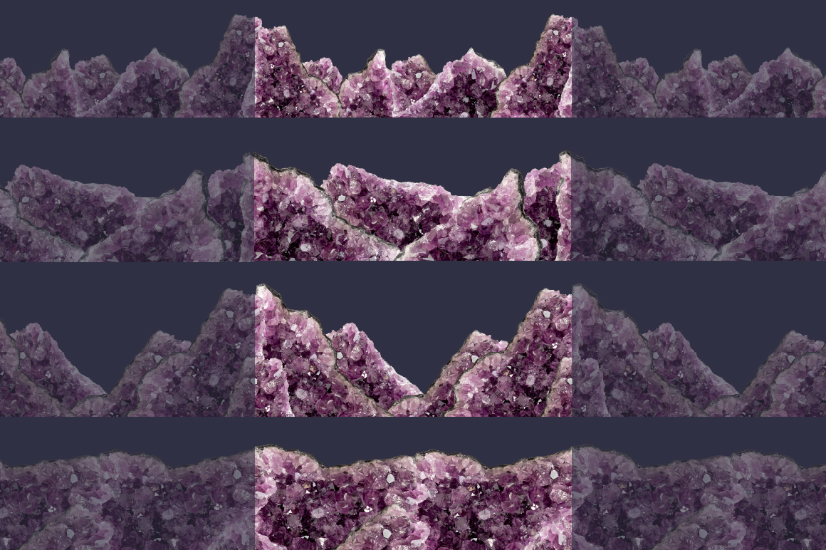 These dazzling Amethyst borders are seamless, you can tile the png files to repeat and fit any length. Click the images below to get a closer look. Since these borders are made with photographic elements, they add a realistic and natural mood to your design. You can easily create your own Amethyst crystal landscapes!