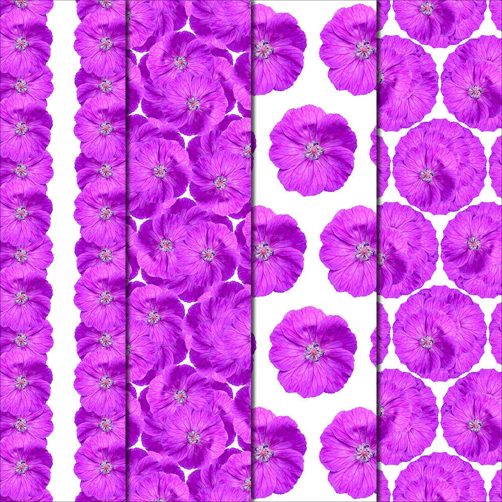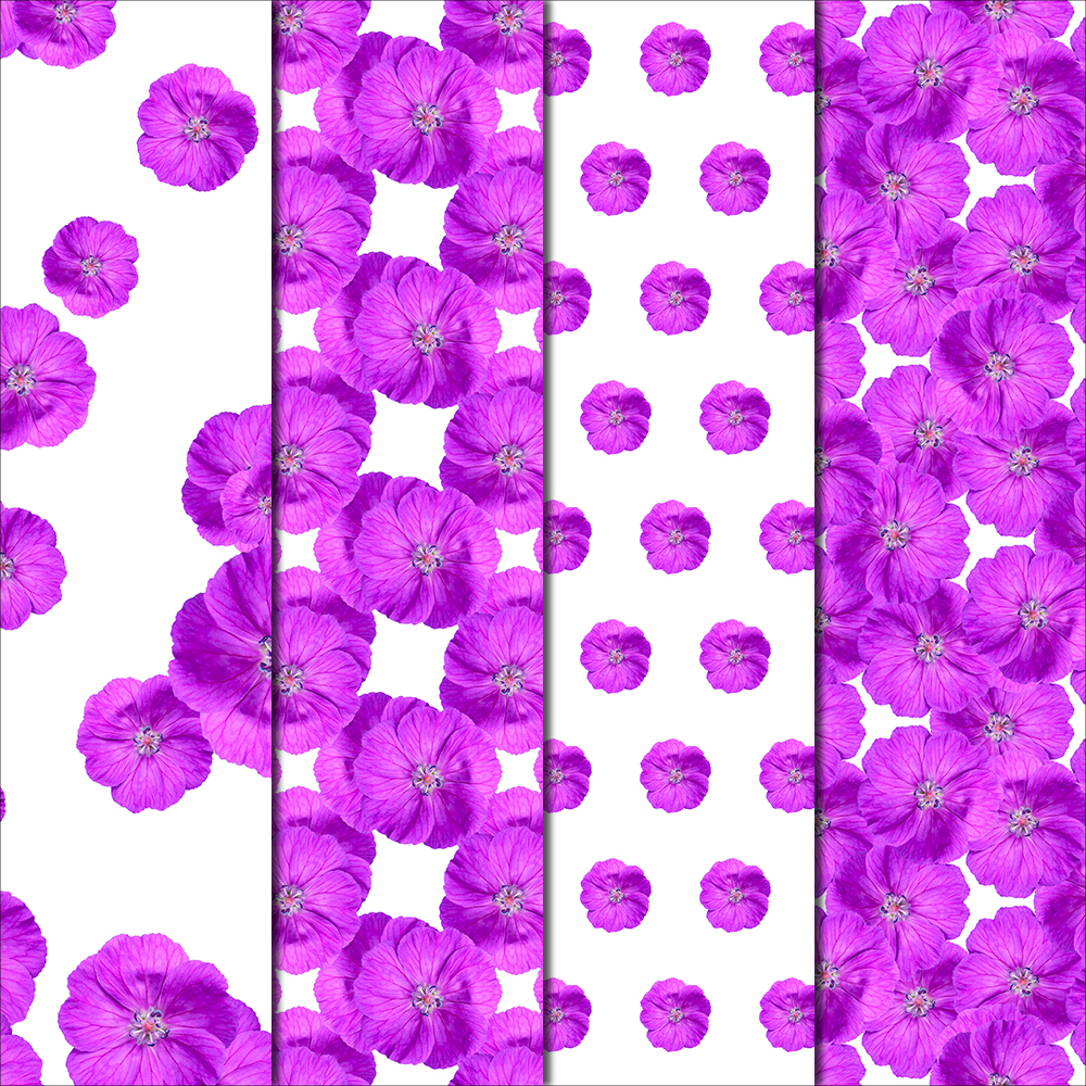 The Cranesbill Geranium flower featured in these patterns is delicate yet bold! This little flower is remarkably bright with it’s papery magenta petals. The papers created with these blooms are full of fun! The patterns in this pack are all made with a WHITE background.