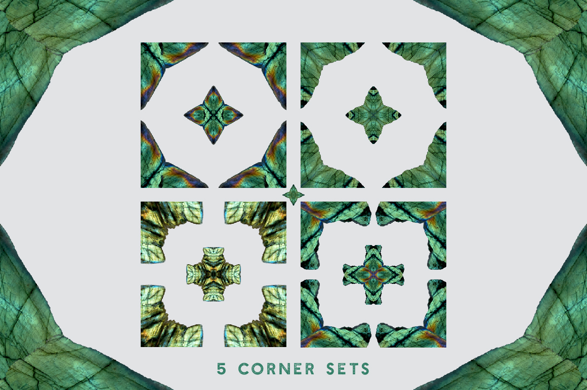 At a glance, Labradorite may appear to be an ordinary rock, but one slight tilt and this marvelous stone will reveal a flash of magic. This Gemstone Border Collection was hand selected and carefully arranged into edges and corners that are ready to use. The long edge borders are seamless and can be repeated and rotated to fit the desired placement. Line the edges of your design in the magical iridescent glow of Labradorite.